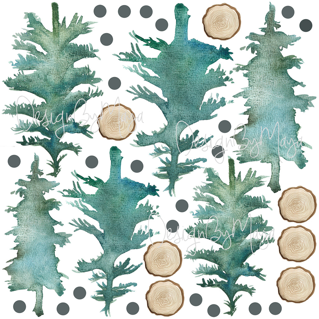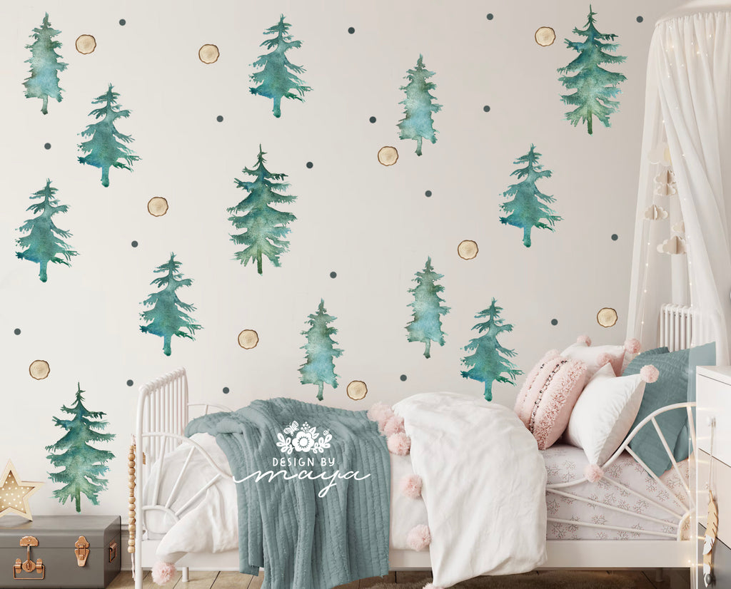 Woodland Pine Trees - Fabric Nursery Wall Art Decals